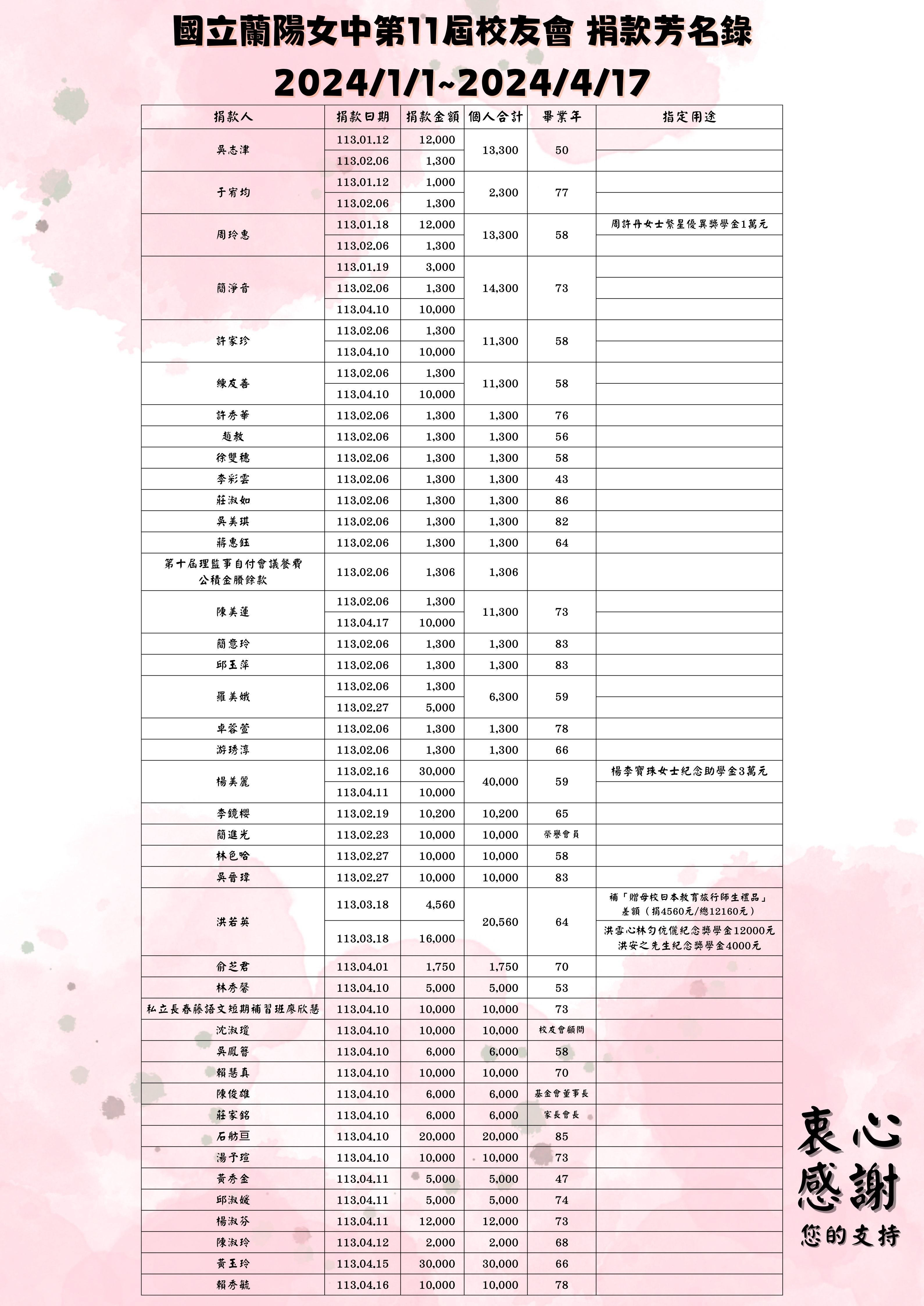 國立蘭陽女中 校友會捐款徵信錄 ]